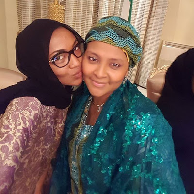 On Wednesday, Gumsu Sani Abacha and her daughters paid a visit to the first lady, Aisha Buhari at the Aso Villa, Abuja, and her daughters. Gumsu is the daughter of the late military dictator.