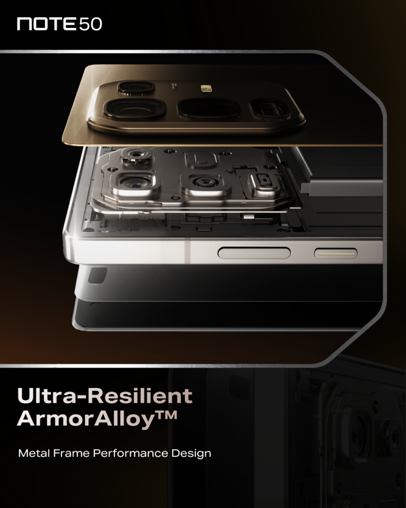 Today’s smartphones are part of our personal style, and the Infinix NOTE 50 is built to stand out. Its sleek, industrial design is crafted from a blend of Damascus steel and aerospace-grade aluminum, making it as durable as it is eye-catching. Whether you’re at work, at play, or showing off your latest fit, this phone holds its own in any setting.
