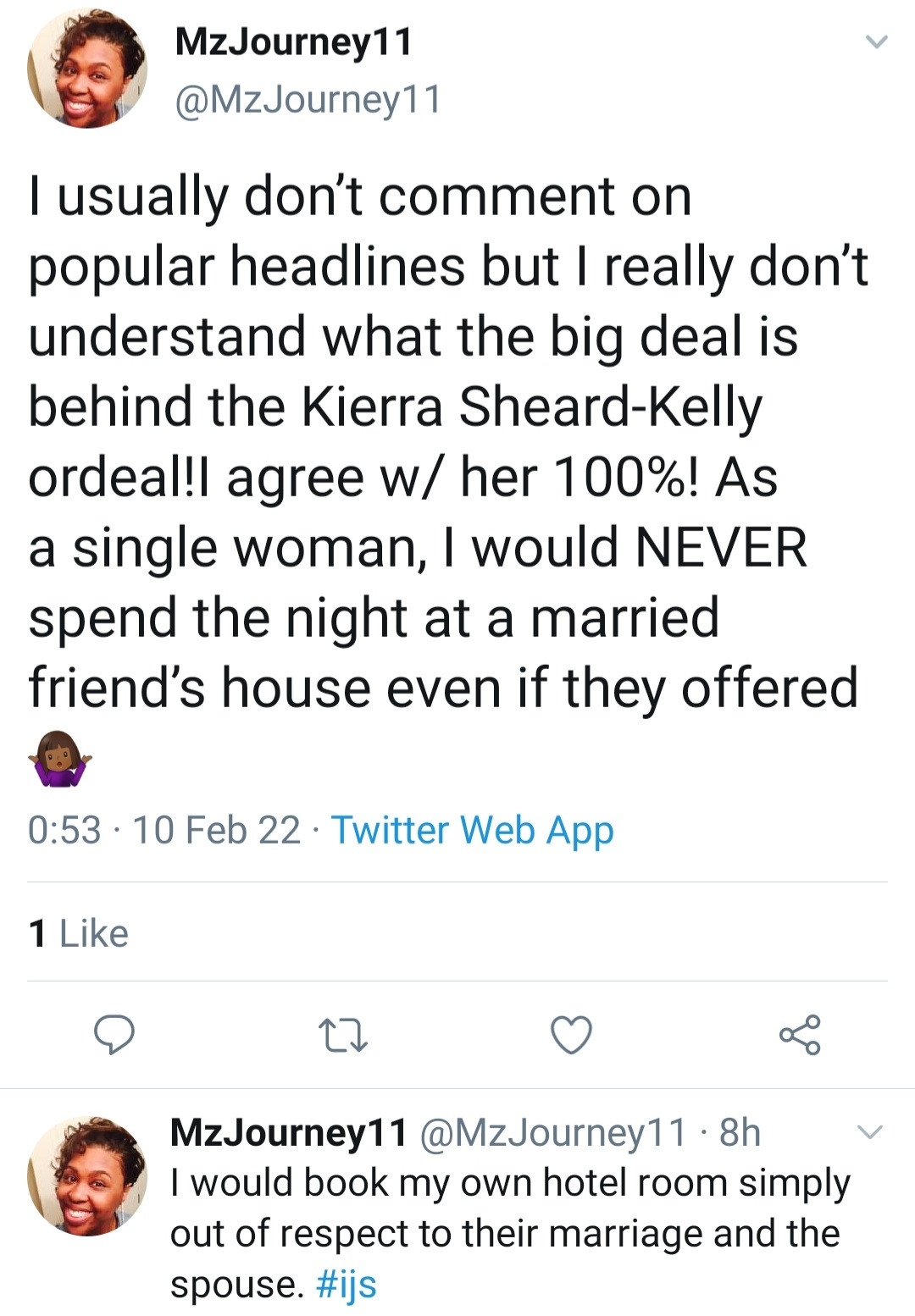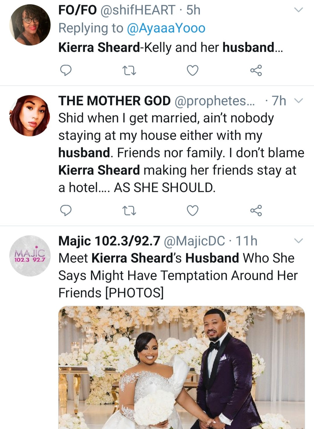 Gospel singer, Kierra Sheard-Kelly recently revealed that she doesn’t allow her female friends to spend the night at her home so that her husband isn’t tempted to have sex with them.