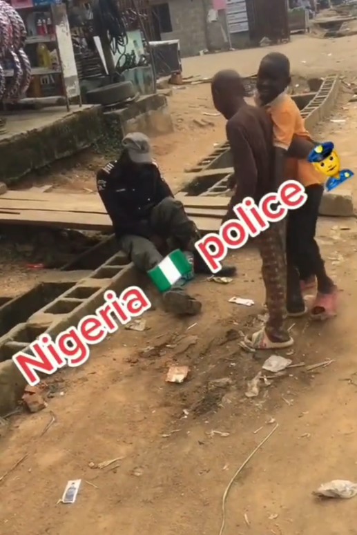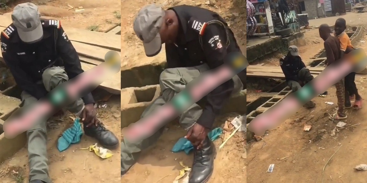 In a video that was shared online, the police officer, who was said to be drunk, is seen sitting on a culvert with his head falling forward.