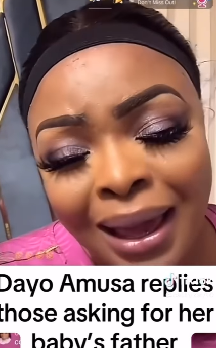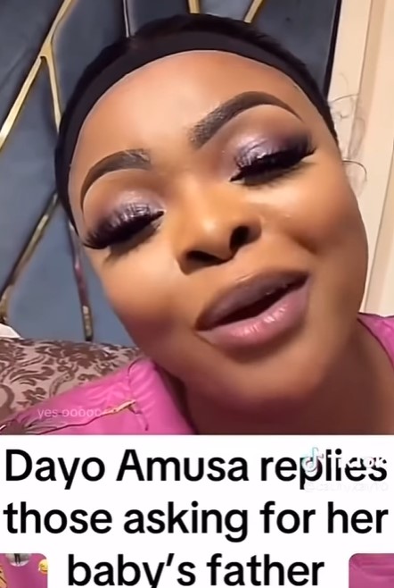 Nollywood actress, Dayo Amusa has responded to inquiries from Nigerians regarding the identity of her baby’s father.