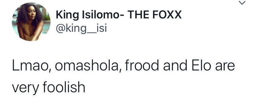 Former Housemate, Isolomo has joined the social media conversation on whether or not housemate, Tacha shoould be disqualified from the house, after her clash with Mercy earlier today.