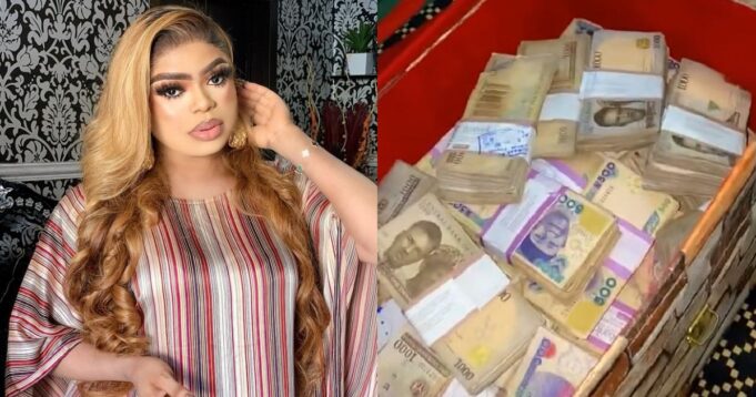 Nigerian Transvestite, Idris Okuneye a.k.a Bobrisky has taken to his snapchat account to show off the box of cash which his boyfriend allegedly sent to him.