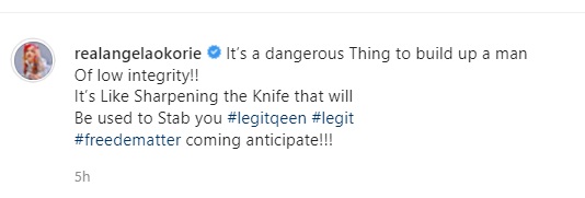 Actress Angela Okorie has advised her fellow ladies against building up a man with low integrity.