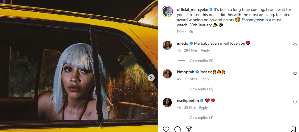 “It’s been a long time coming, I can’t wait for you all to see this one, I did this with the most amazing, talented award winning Nollywood actors. #shantytown is a must-watch. 20th January”