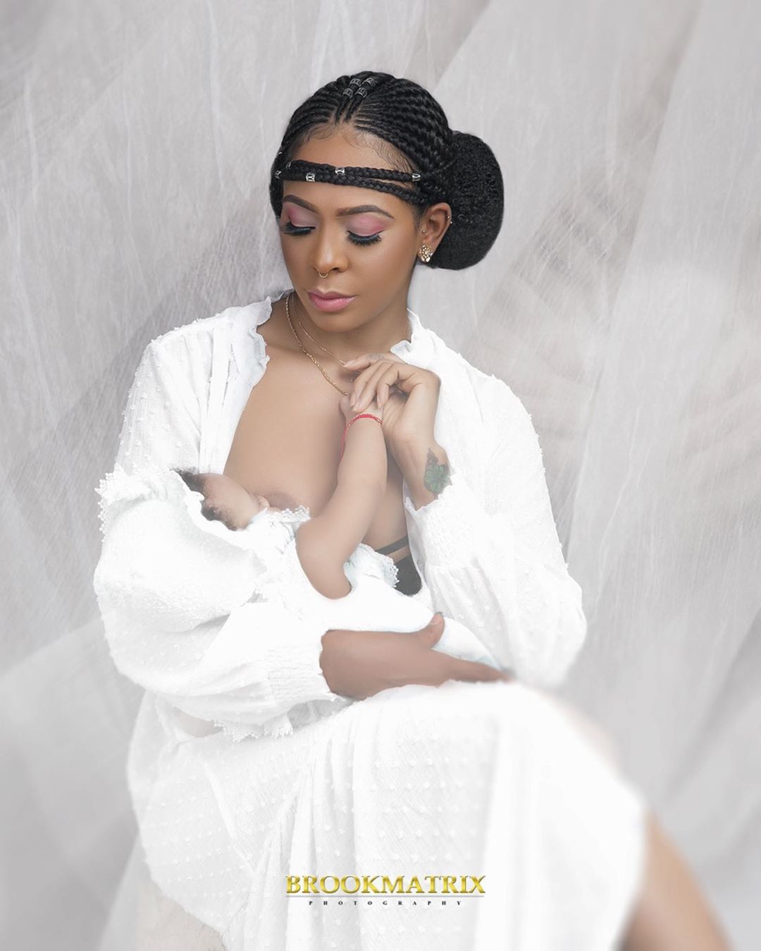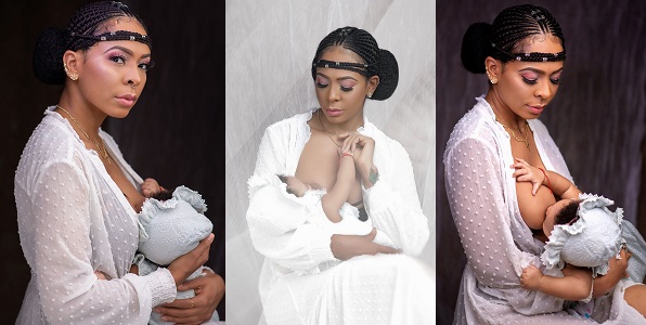 Taking to Instagram to share beautiful photos of herself breastfeeding her daughter, Tboss recalled how she almost got depressed when she couldn’t lactate for weeks until one ‘Beautiful Day’ she discovered she had milk.