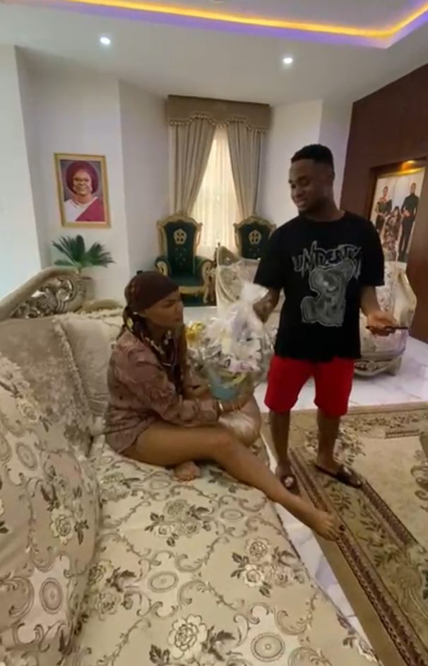 In the video posted on her Instagram page, her son, Festus, came into the living room with a flower while she was watching TV and she asked who it was for.