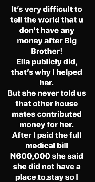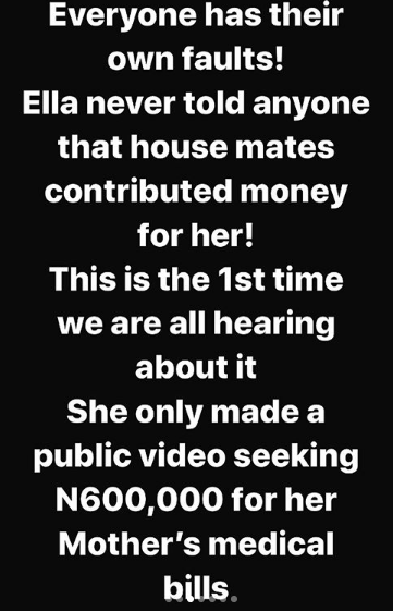 “Put all ur sentiments & emotions aside! Look at it from a LOGICAL perspective! Jaruma’s words carry weight therefore I HAVE TO SAY IT AS IT IS no matter who is involved…! Ella got contributions from house mates, she got another 600k & another 1.5M yet a boutique still called her out for owing 50k..!!! As the helper, u will feel so sad….. what will then happen if u give her capital to build her life? NO INSULTS OR ABUSIVE WORDS PLEASE…!!!!” Jaruma wrote alongside receipts
