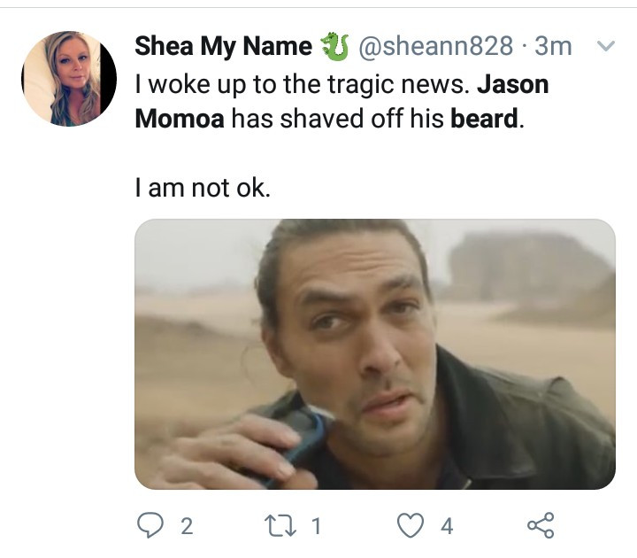 “Aquaman” has shaved off his famous beards and fans are inconsolable.