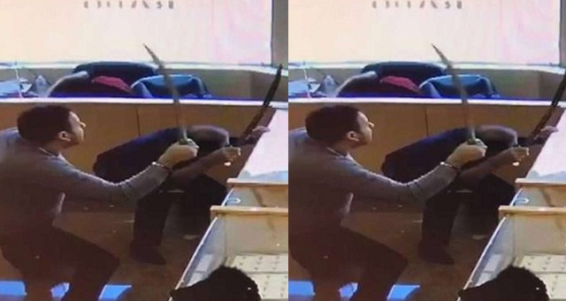 A second employee then arrives with a sword to provide back-up, but he stacks it on his arse, knocking over a chair. In the moment, it probably wasn’t an appropriate time for laughter, but you can only hope the staff have shared a good chuckle upon watching the footage.