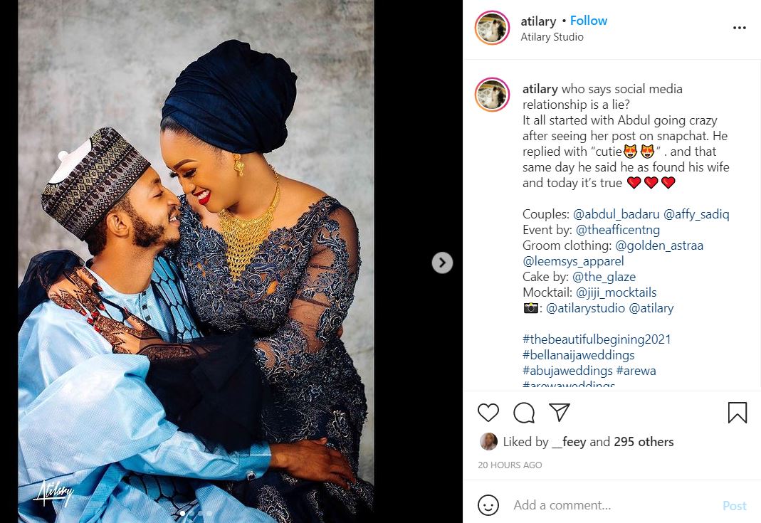 The official wedding photographer, Atilary, who shared the couple’s unique love story on Instagram revealed their love started with Abdurrahman commenting on Affiya’s photo on Snapchat.