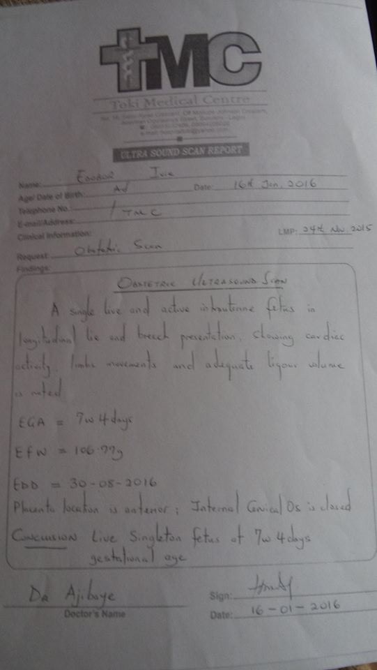 In November 24th, 2015, Ivie was pregnant for me with twins which she confirmed severally in our chat (see attached for your perusal and confirmation the Ultra Sound Scan Report for the LMP and EDD) and the pregnancy grow for 5 (five) months and the babies had become 5(five) months old in June.