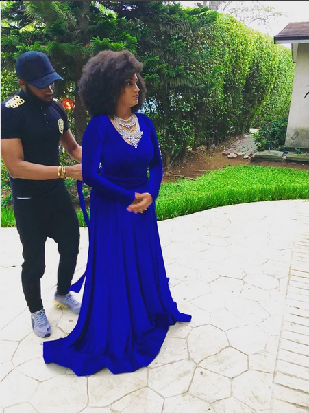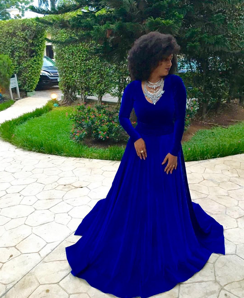 The beauty donned a lovely dark blue dress which was styled by celebrity stylist, Jeremiah Ogbodo AKA Swanky Jerry.