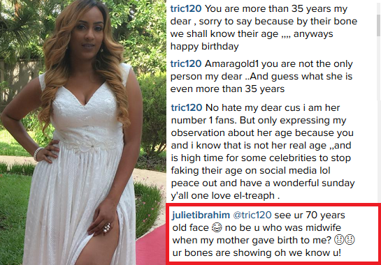 The fan had commented “by their bones we shall know their age..“. She fired back at the fan saying: