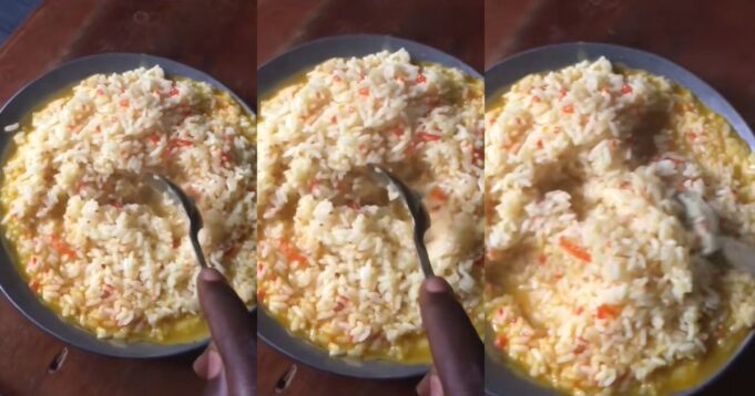 The video displayed a plate of concoction rice looking soggy due to the excessive water used in cooking the meal.