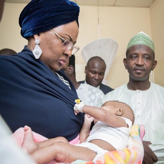 First and second(if there’s anything like that) ladies of the country, Aisha Buhari and Dolapo Osinbajo today paid a visit to Khadija Bashir, the 8 month old baby who was raped when she was 6 months old, at the Aminu Kano Teaching Hospital in Kano.