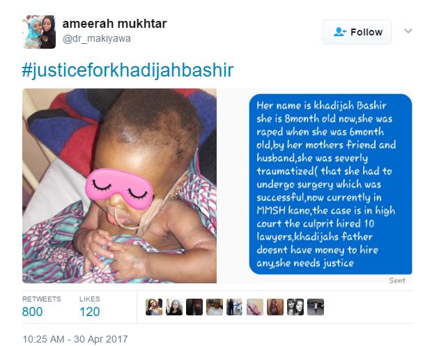 Khadija Bashir was reportedly raped by the husband of her mother’s childless friend/neighbour.