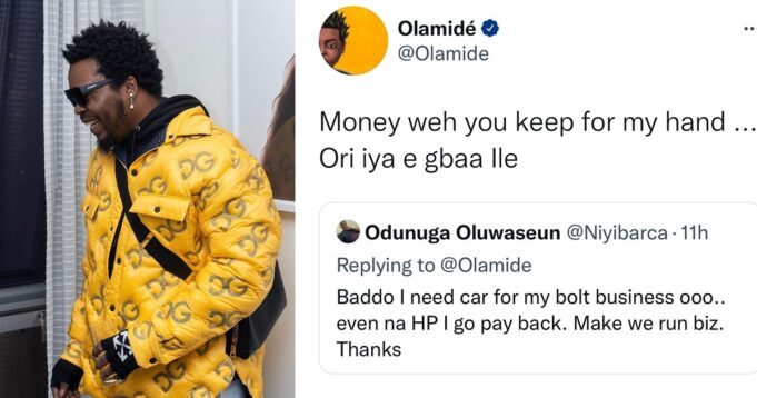 Popular Nigerian Rapper, Olamide recently trended on social media following a reply he gave a follower/fan who asked him for a car.