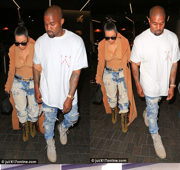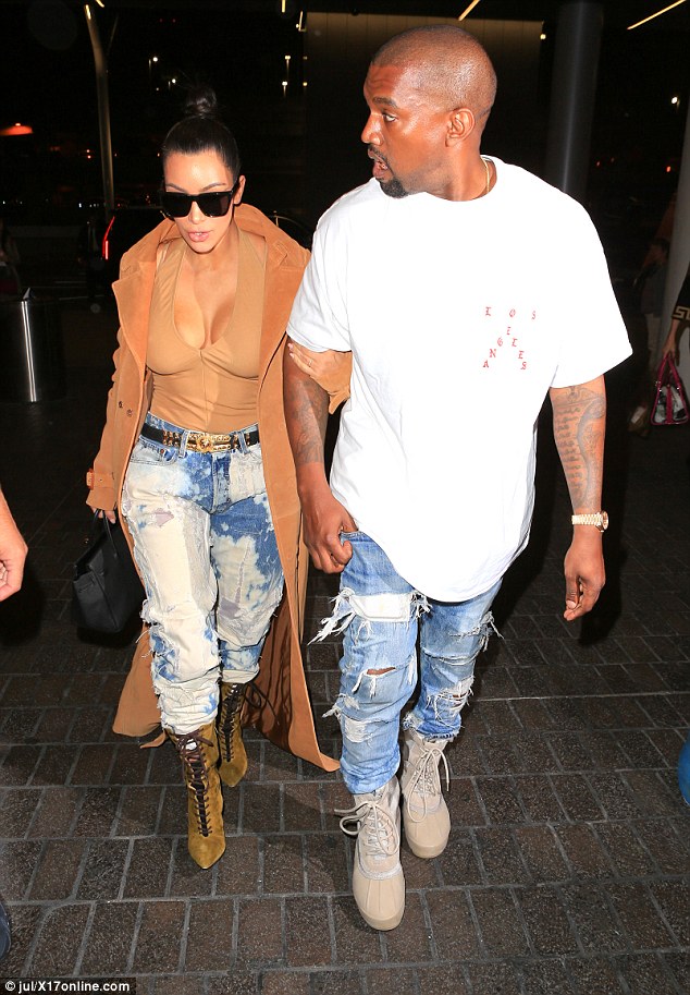 Seriously influential couple, Kanye and Kim Kardashian West were both photoed holding hands as they jetted out of LA in matching ripped jeans.