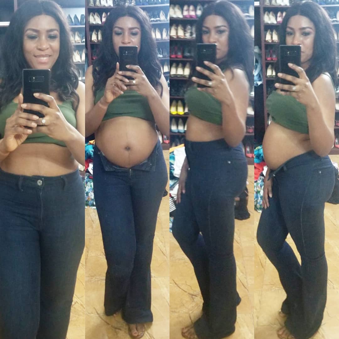 Linda replied to Kemi of course by sharing pictures of her bare bump.. She shared the photos accompanying them with details on her pregnancy. Linda wrote: