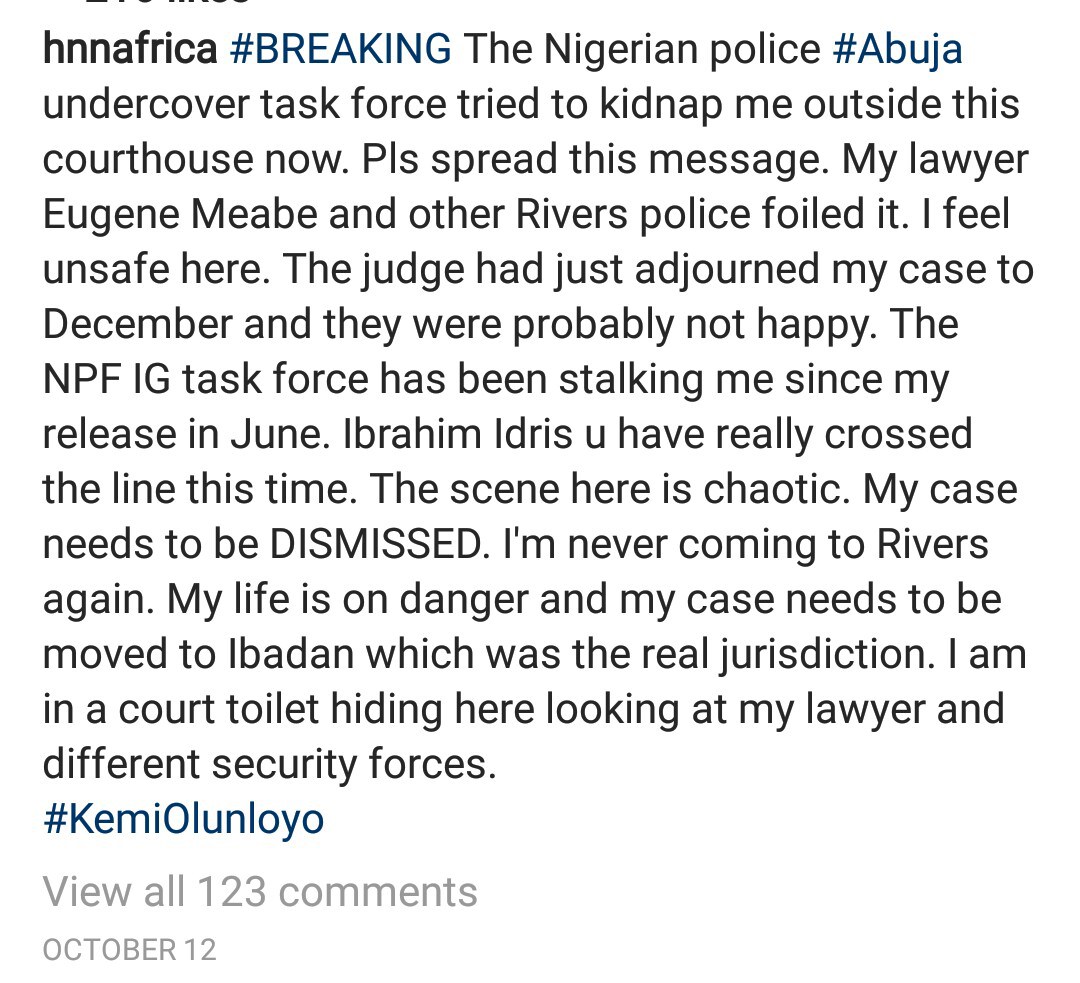 She made it clear then that she felt unsafe and that was the last we heard of Aunty Kemi Omololu Olunloyo!