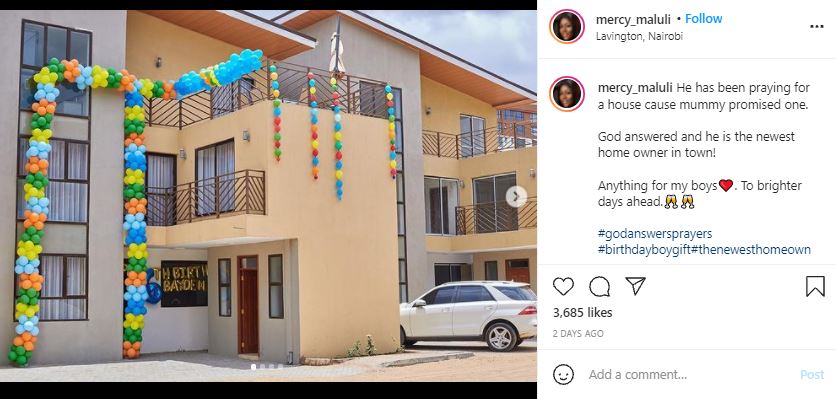 In another post, Maluli revealed that her son had been praying for a house because she promised him one so she decided to gift him a house as his 6th birthday gift.