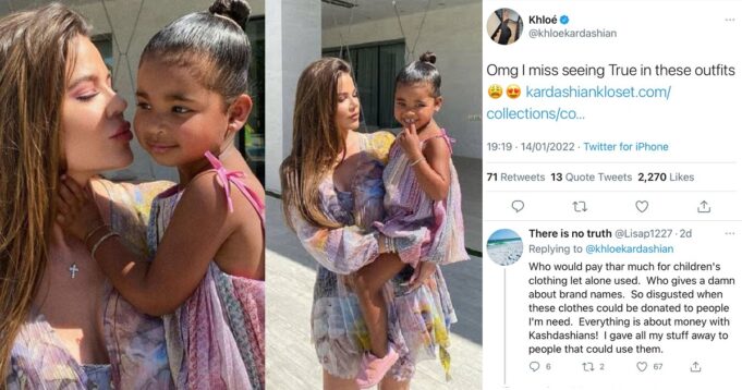 American media personality, Khloé Kardashian, has been heavily criticized for putting her daughter, True’s used clothes up for sale.