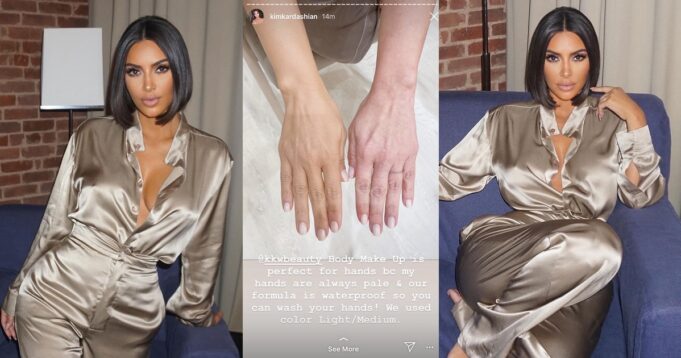 Kim shared a photo of her two hands, one with the body makeup and the other without the body makeup and netizens have trolled her for it.