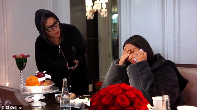 As her mom Kris Jenner rushes over to find out what is wrong, Kim tells her family,
