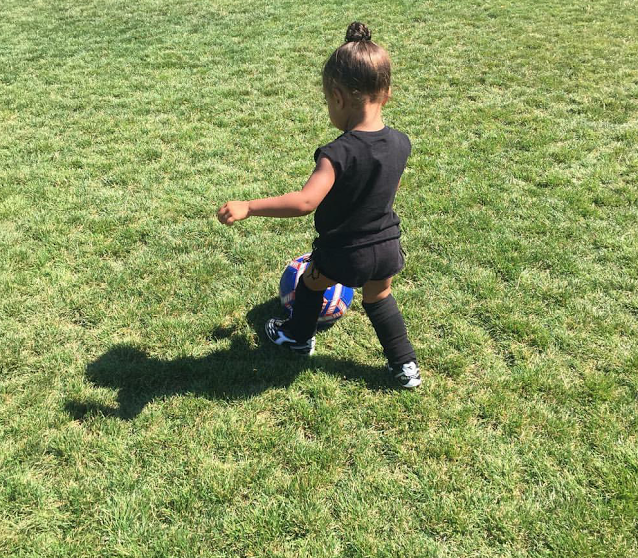 Kim Kardashian proudly shared these Pictures of her Daughter, North West Playing Football on a soccer field.