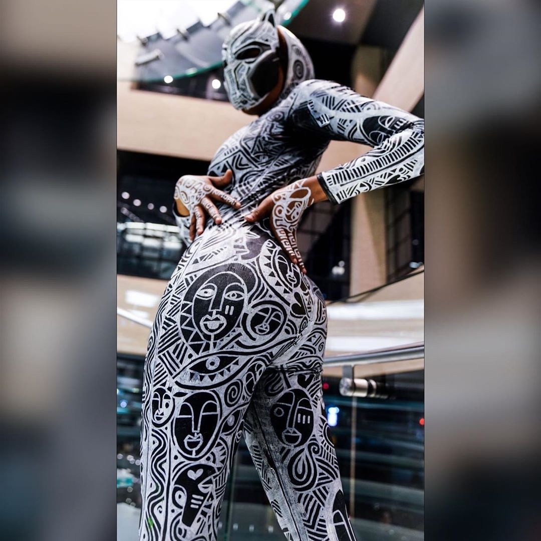 The ex-beauty queen and a reality star took to Instagram to share stunning photos of herself posing in Black Panther custom-printed dress for this year’s Halloween.