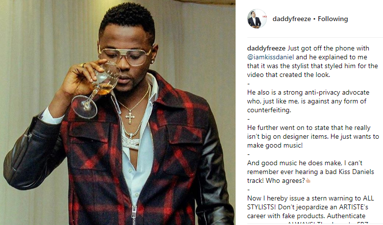 Kiss Daniel was recently busted for wearing a fake Louis Vuitton sweatshirt.