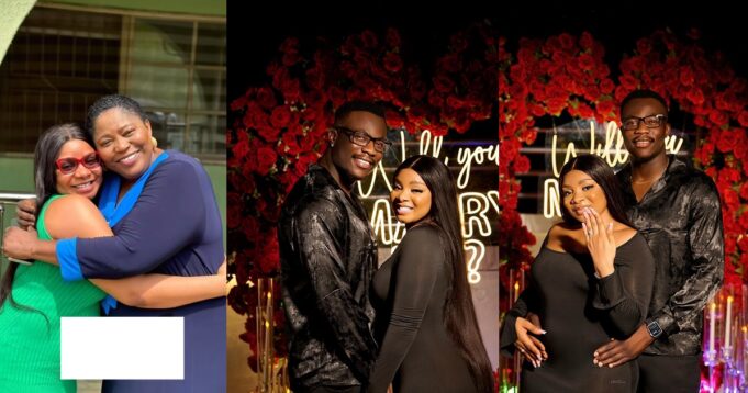Former BBNaija housemate, Queen Mercy Atang left netizens dumbfounded after herself and her fiancé’s mum were captured sharing a kiss in a heartwarming video.