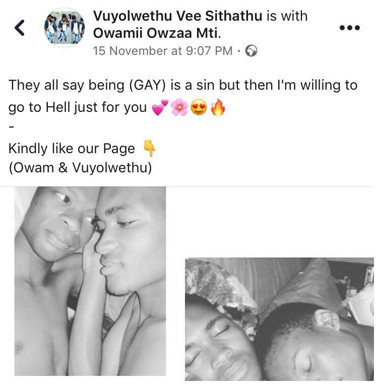 A South African man, identified on Facebook as Vuyolwethu Vee Sithathu, is happy about his relationship with his lover, Owamii Owzaa Mti, 16, who apparently is still in High School.