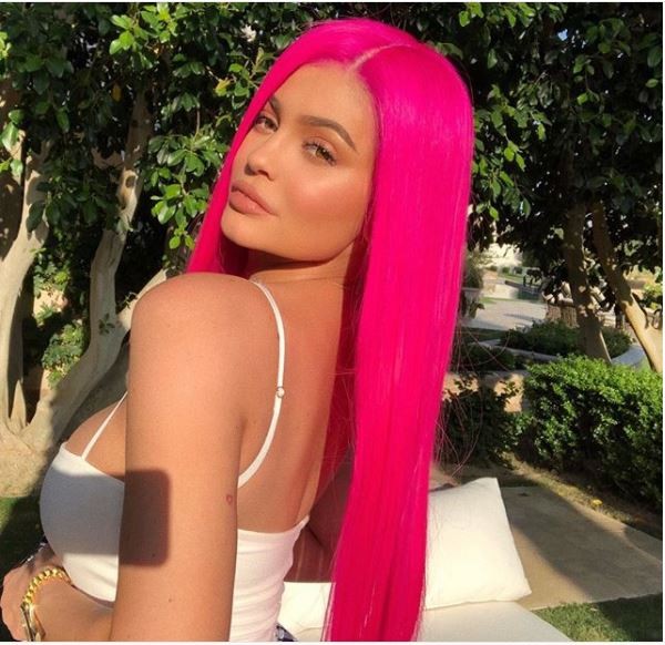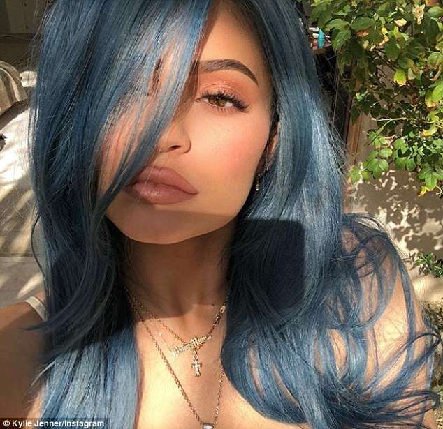 Proud new mama, Kylie Jenner who’s attending the annual Coachella Festival in California, took to her Instagram to unveil her new blue Hairdo after previously rocking a pink wig.