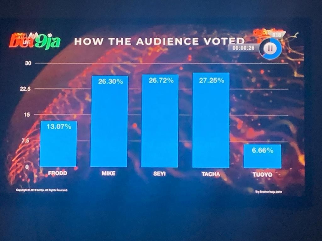 The nomination by the housemate last week, showed that Esther nominated Mike and Jeff, Thelma nominated Frodd and Tacha, Ike nominated Seyi and Frodd and Seyi nominated Frodd and Tuoyo.