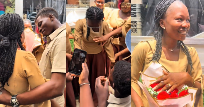In a video shared online, the lady @theadunni_comfort noted that she had attended her church’s Easter Service when her partner, surprisingly, proposed to her.