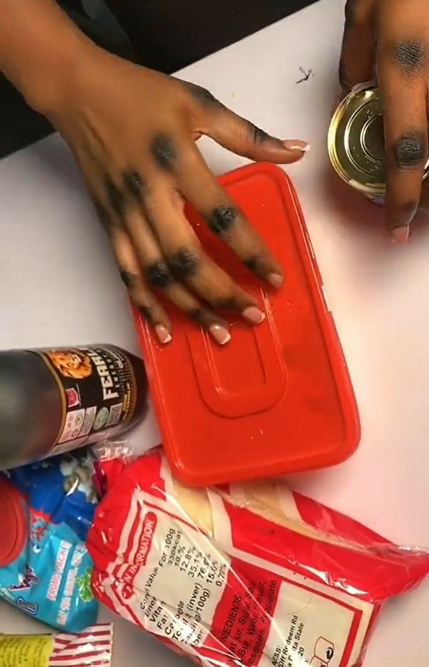 @nickey_pearls: So this lady Coloured her knuckles, went out, bought bread, bought beans! Bought milk! And then as at down on camera and decided to traumatize us? So unfair!!!