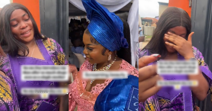 The footage showed family members comforting the lady as the bride introduced her spouse to their family.