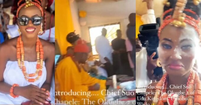 A young Nigerian lady identified as, Tracy Chapele-Ugo, has been conferred with a traditional title in her hometown in Urhoboland.