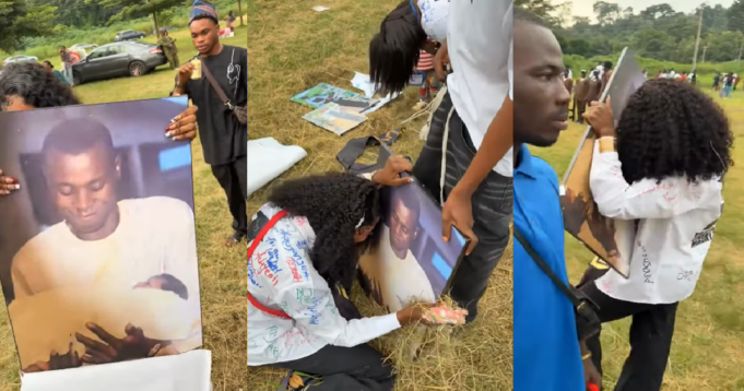 The video showed the lady carefully unwrapping her gift, unaware of what it contained. The moment she laid eyes on the image of her father, she broke down sobbing.