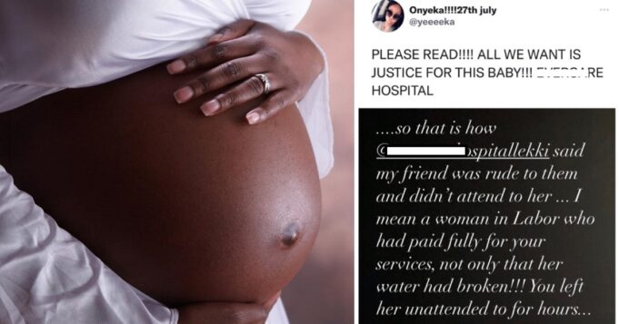 “So that is how @evercarehospitallekki said my friend was rude to them and didn’t attend to her … I mean a woman in Labor who had paid fully for your services, not only that her water had broken!!! You left her unattended to for hours.