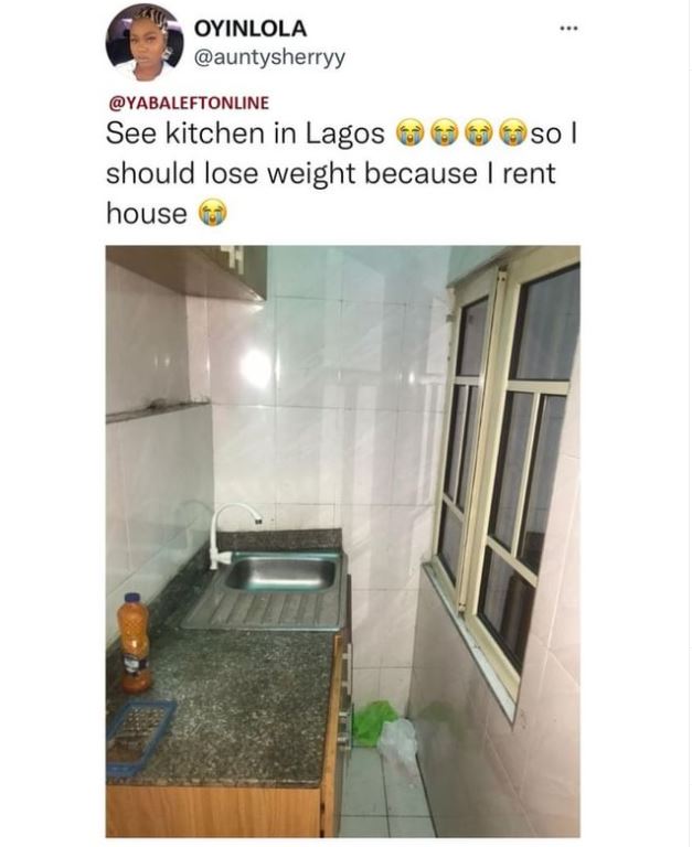 A Nigerian Twitter user who is search of an apartment in Lagos state has stirred hilarious reactions after she shared photo of a tiny kitchen that was provided in an apartment she was shown.