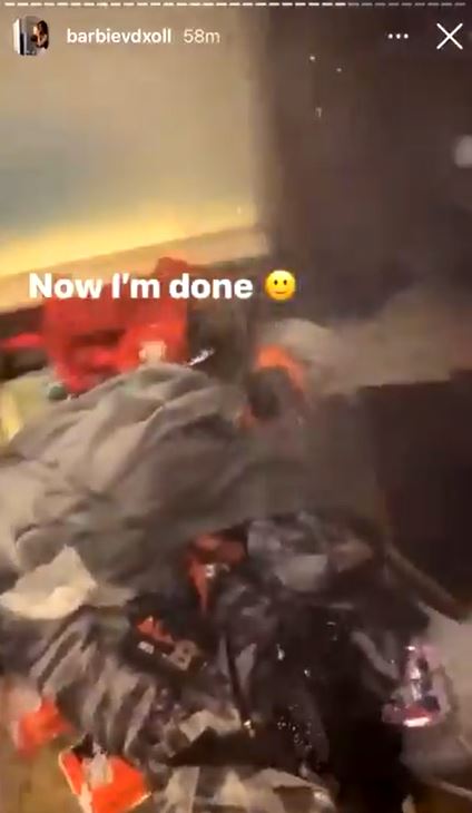 The said lady had taken to her Insta-story to share how she discovered her man was having an affair and in a bid to deal with him in the best way she deemed fit, the lady with IG handle @barbievdxoll recorded herself causing damage to his valuable items.