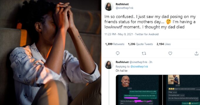 She revealed she had always thought her father died in a ghastly accident, until she saw him posing in a family photo her friend shared on mothers’ day.