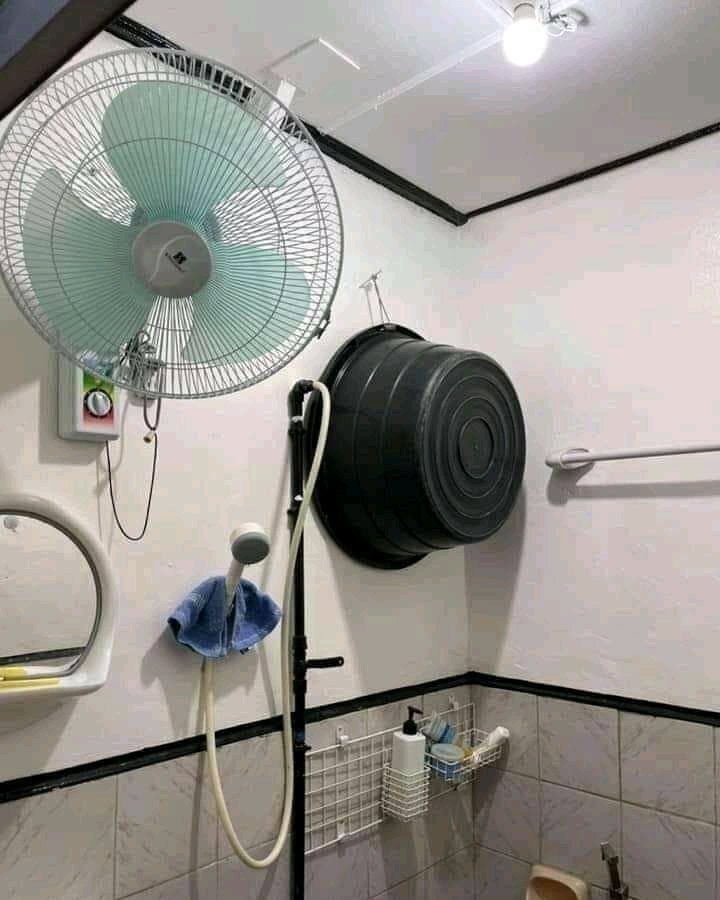 I just got my new apartment here in Abuja and entering into the toilet I found this. And I’m paying 150k a year for this!! Will I be taking my bath with the fan on or off??