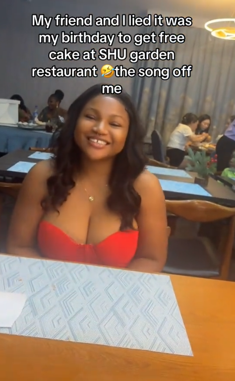 A lady has got people talking after revealing how she and her friend pretended it was her birthday to get a free cake at a restaurant.