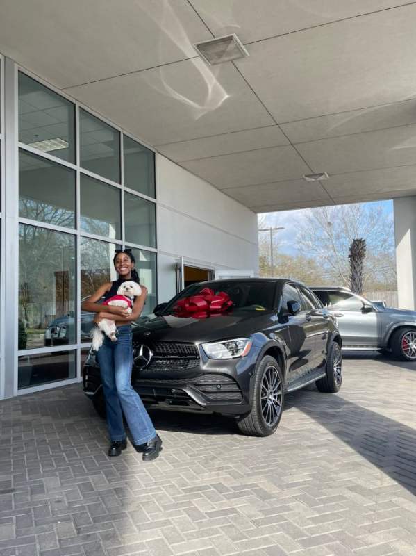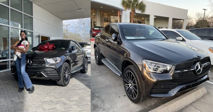 A young lady has received a brand new Mercedes Benz from her parents, for passing her exams and getting accepted into medical school.