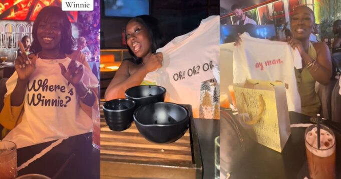 In a heartwarming display, a lady gifted her friends customized T-shirts with their catchphrases as appreciation gifts during her birthday celebration.