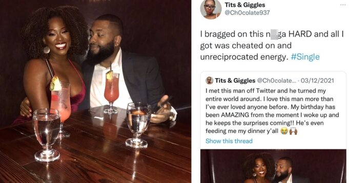 “I bragged on this nigga HARD and all I got was cheated on and unreciprocated energy. #Single”, she wrote.